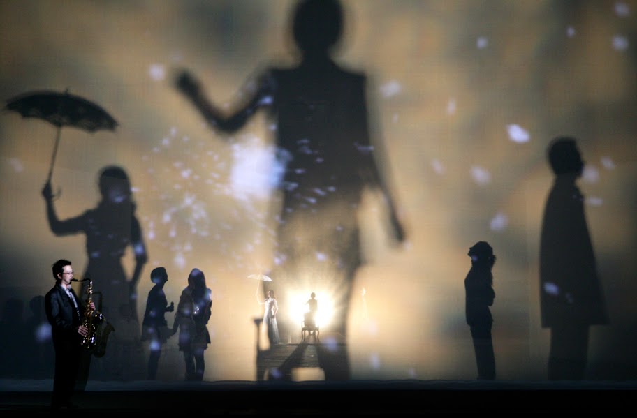 我喜歡多媒體影片投射在薄紗布幕上的手法